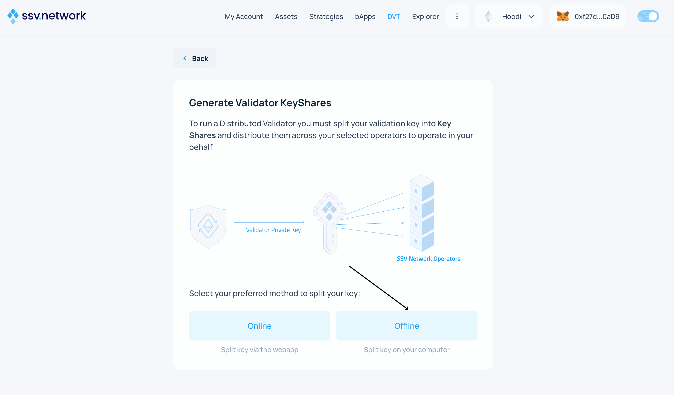 - Select the Offline method to split your key